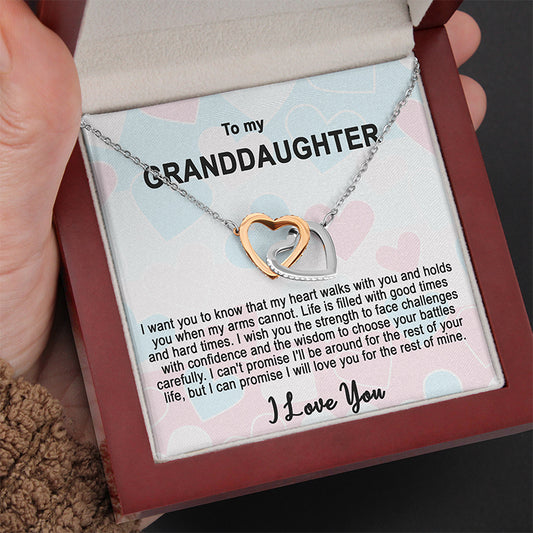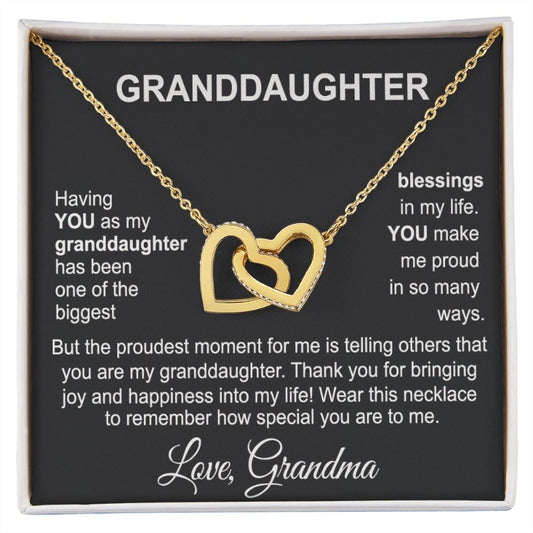 Personalized Granddaughter Necklace - Interlocking Hearts - You Are A Joy To Our Hearts