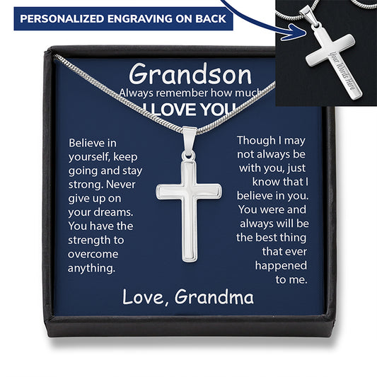 Personalized Grandson Gifts - Engraved Cross Necklace