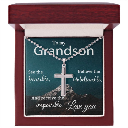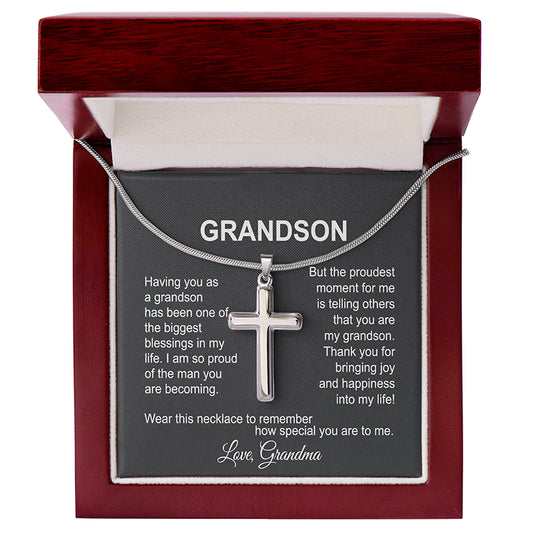 Grandson Cross Necklace - Birthday Gifts For Grandson