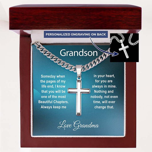 Grandson Cross Necklace - Birthday Gifts For Grandson