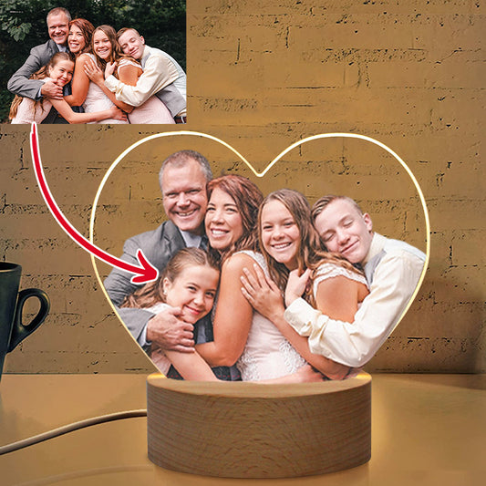 Personalized Photo Heart-Shaped Acrylic Panel with Light Base