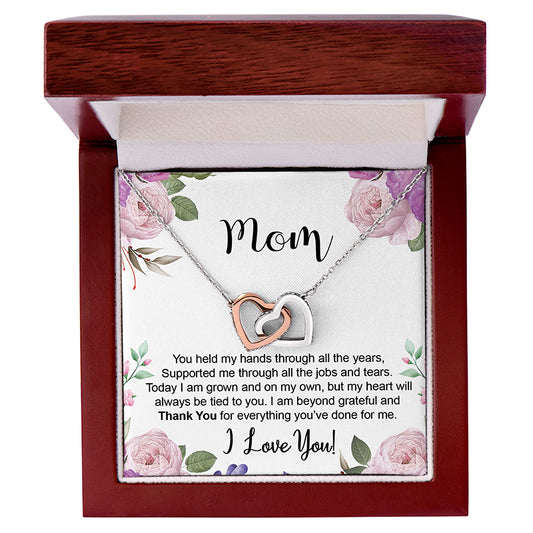 Mother & Daughter Necklace, Personalized Message Card, Two Interlocking Hearts