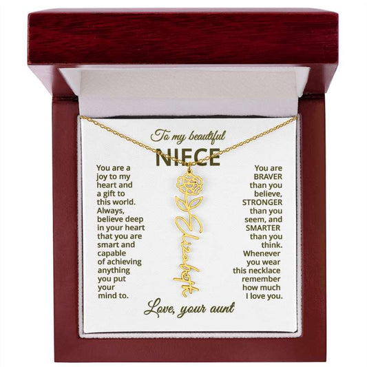 To My Niece Custom Name Necklace, Flower Birth Month, Customized Card Message