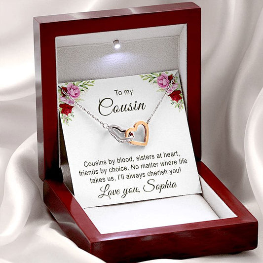 Heart Necklace for Cousin, Personalized Message Card, Christmas Meaningful Gift