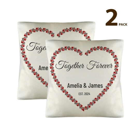 Personalized Pillow Covers Set of Two w/Custom Text Floral Heart Design 18x18in